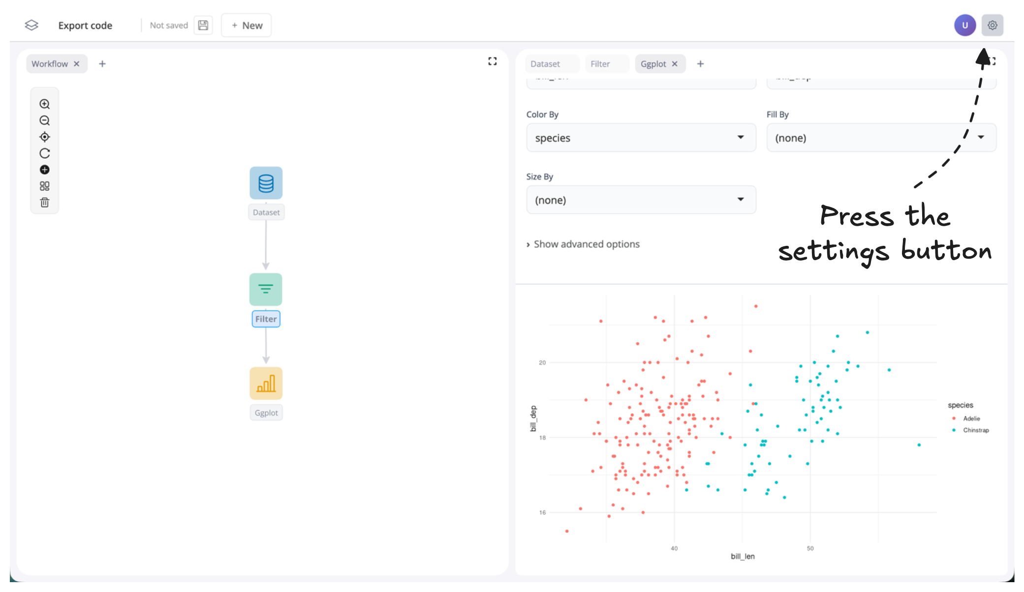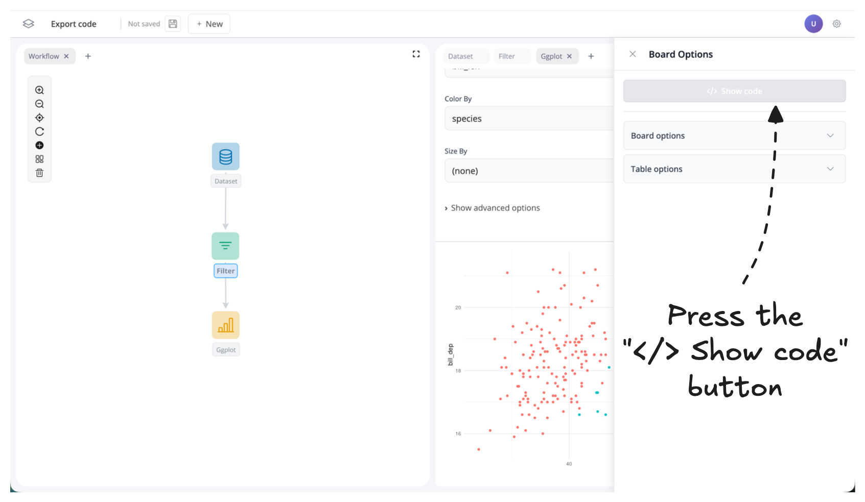 - Press the "</> Show Code" button:
